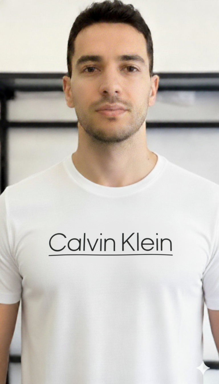 CAMISA CALVIN KLEIN BRANCA (ESTAMPA PRETA)