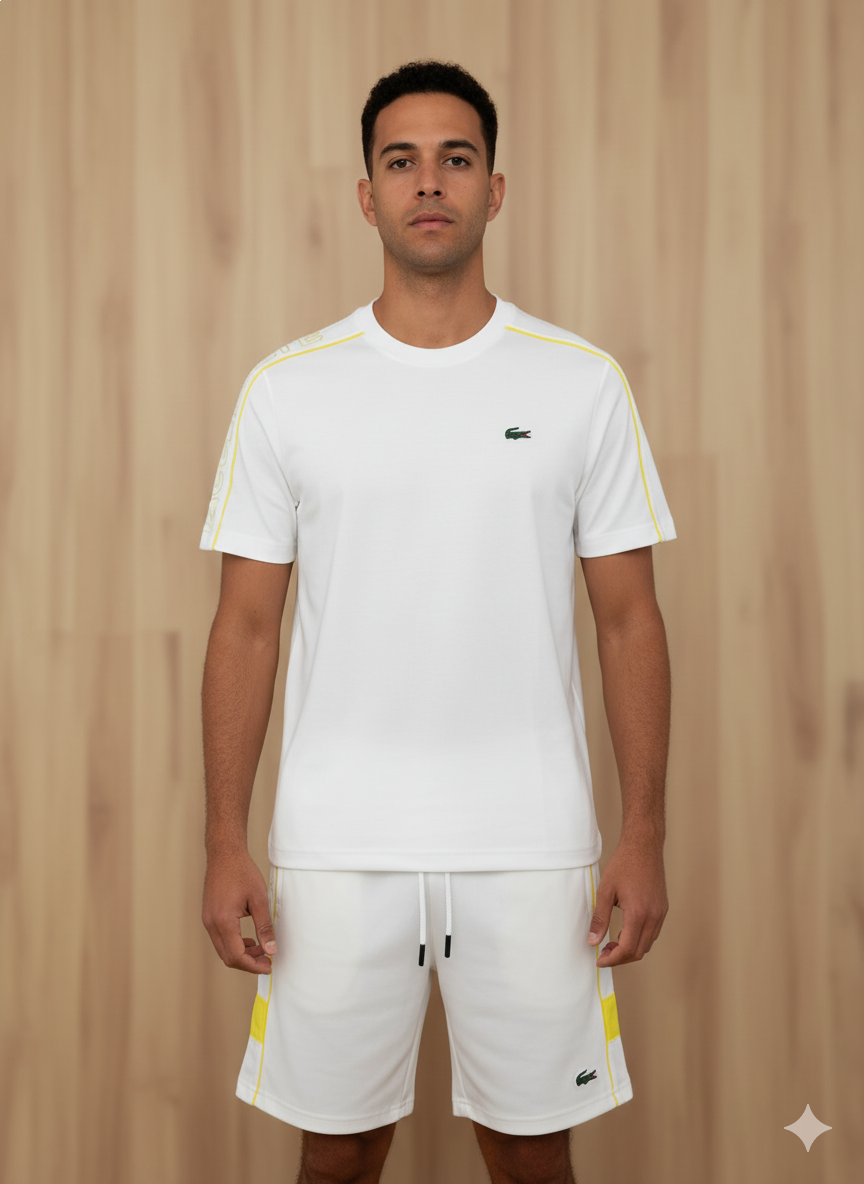 CONJUNTO LACOSTE BRANCO/LISTRAS AMARELA